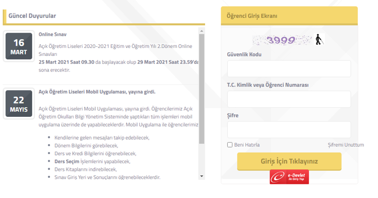 Takvime göre sınavların anadolu üniversitesi açıköğretim sistemi sınav giriş sistemi üzerinden yapılacağı bildirildi.
